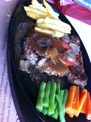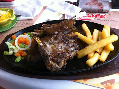 The steaks were served in sizzling hot plate and I personally love the sound of the sizzling when the waiter pours the sauce onto the plate. The first one we ordered was the original Sirloin Steak. It was a decent-sized steak with a little extra side dish. Then came the new food on the menu, BBQ Lamb Ribs. Slightly bigger size than the Sirloin, but I guess it was due to the bone part of the Ribs.