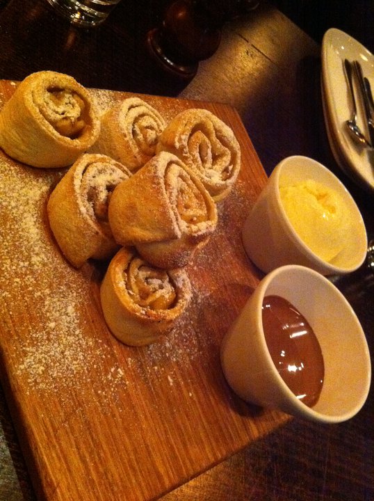 Since we enjoyed a decent dinner, we decided to sit around a little longer for the desserts. For the first one, we aimed high and ordered Warm Belgian Waffles, knowing that across the restaurant was chocolate place famous for its waffles. It looked pretty appetising, but the waffle just fell short of my liking. The chocolate was quite good tho. The second one was Our Famous Chocolate Brownie Oven-baked Swirls (or Mini Swirls). It came in three flavours, but we chose banana swirls. It came with vanilla ice cream and melted chocolate. These bite-sized swirls were the best dish of the night.