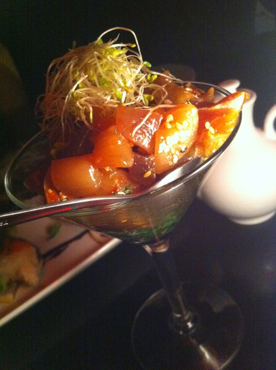 Marinated Yellow-Fin Tuna with Shishito Pepper and Garlic Chips