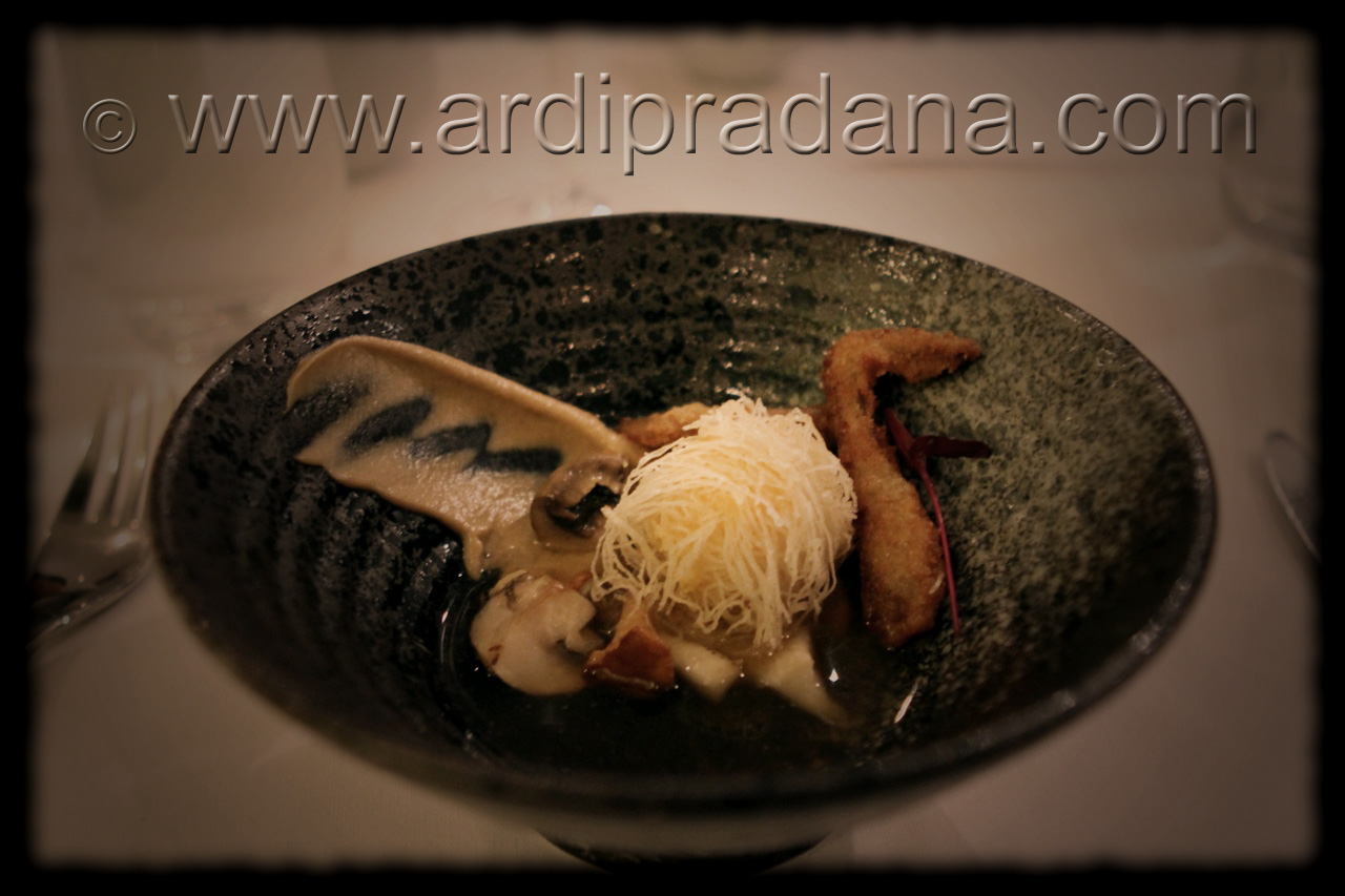 Scampi and chicken liver, all time favourite ingredients! Another delicately simple dish Tetsuya’s presented. It’s interesting to have the walnut vinaigrette to accentuate Scampi’s already-sweet taste. Yumm, such a spoiling moment for my tastebud!
