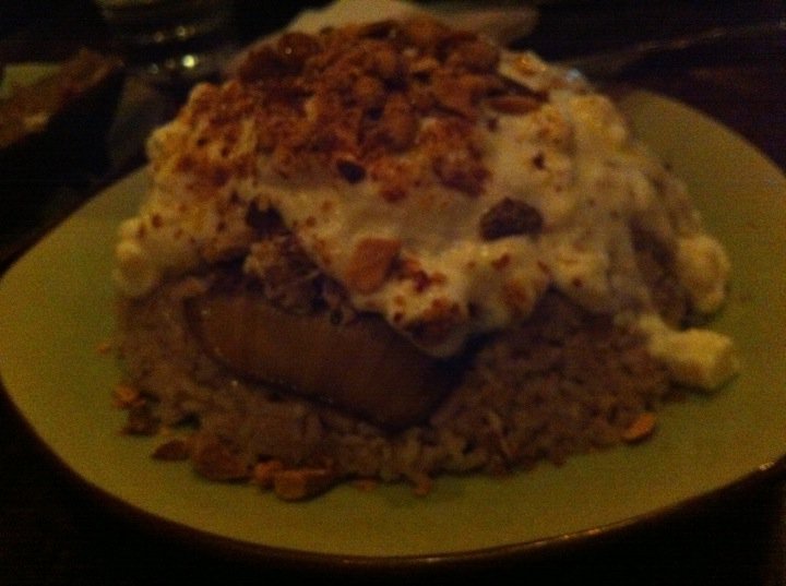 Knafeh – $15 – Baked fine semolina cream, topped with toasted bread crumbs, and served with rosewater syrup.