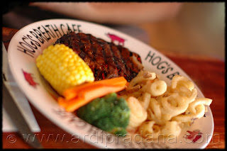 The one I chose was Garlic Prawn Prime Rib. The steak came with a choice of Hog Tail fries or mashed and veggies. I particularly liked the garlic taste on this succulent prime rib.The prawns further accentuated the steak with a fresh ocean taste.