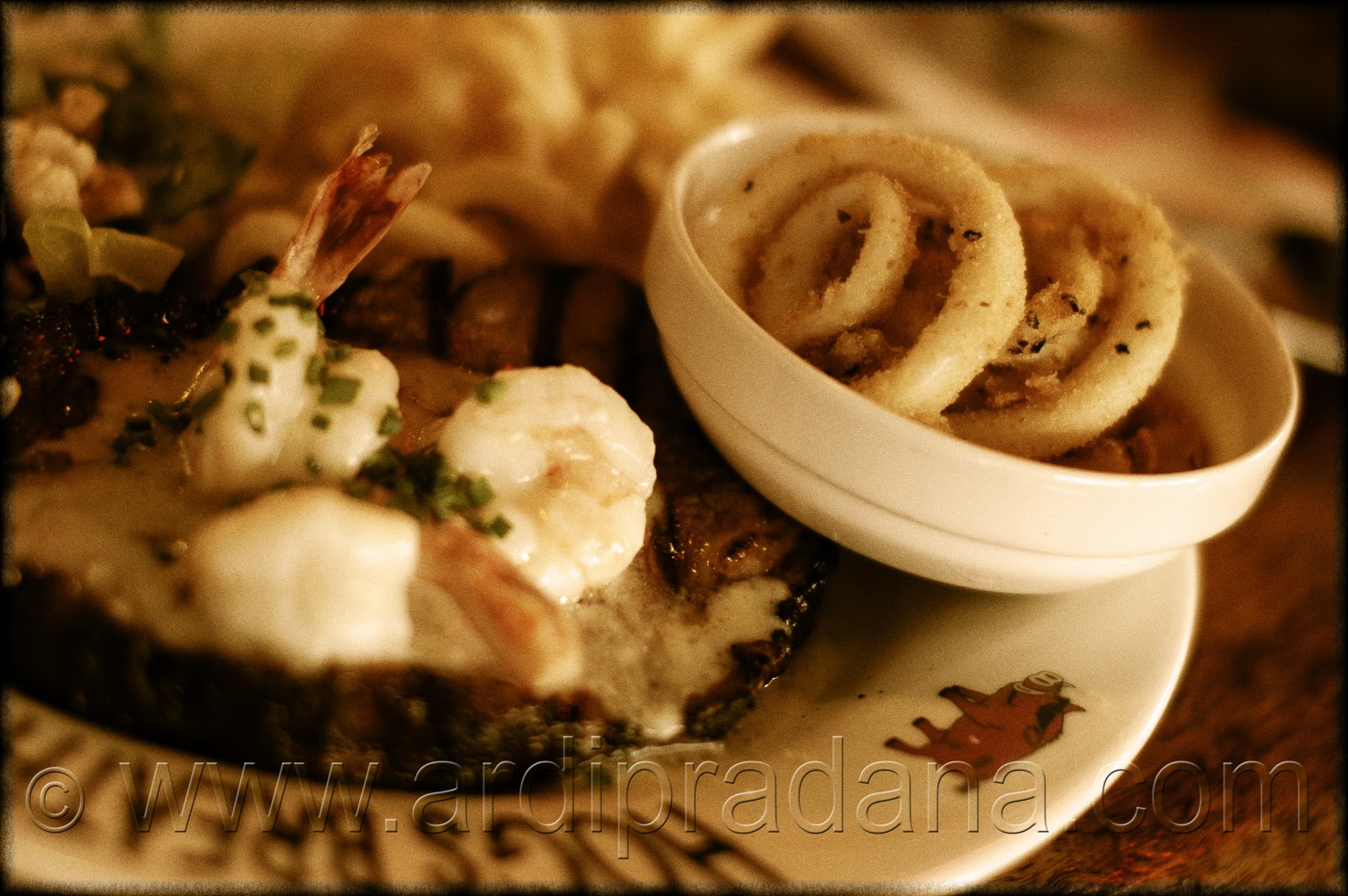 The one I chose was Garlic Prawn Prime Rib. The steak came with a choice of Hog Tail fries or mashed and veggies. I particularly liked the garlic taste on this succulent prime rib.The prawns further accentuated the steak with a fresh ocean taste.