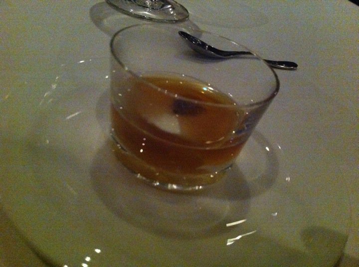 This is the chef’s welcome plate. I am not sure what was in it or how the waiter exactly pronounced it, but this tiny plate packed up massive punch. Unfortunately for me, it tasted better than most of the entrees for the night.
