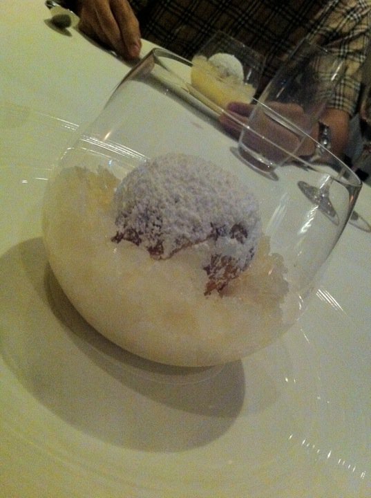This one was made famous by the show Masterchef. Full-on gastronomy in action! It was an egg-shaped meringue with custard filling. Covering the egg was burnt caramel and sprinkles of powdered sugar. The glass’ base was filled with jackfruit granita (shaved ice with jackfruit flavour). This was a real stunner. You had to ‘crack’ the egg as if cracking a real egg. Then the soft egg whites would stick to the skin with ‘egg yolk’ dripping out of the egg. Taste wise? Heavenly refreshing!